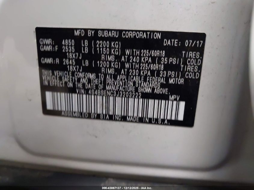 2018 SUBARU OUTBACK 3.6R LIMITED