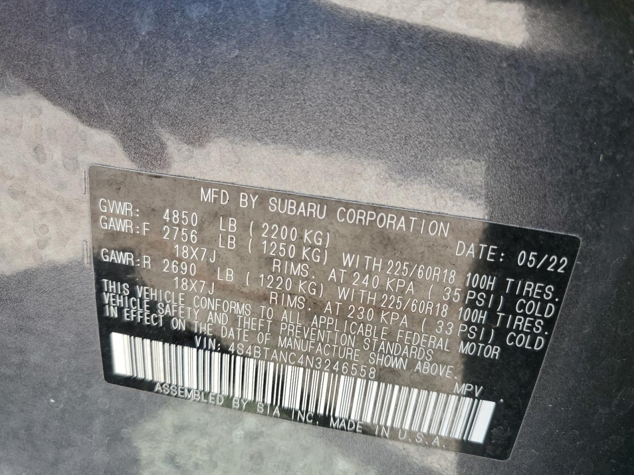 2022 SUBARU OUTBACK - 4S4BTANC4N3246558, колір - Сірий, 2.5, Бензин, Повний привід із США