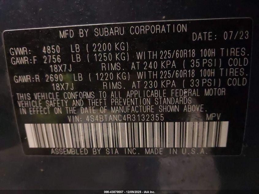 2024 SUBARU OUTBACK - 4S4BTANC4R3132355, колір - Синій, 2.5, Бензин, Повний привід із США