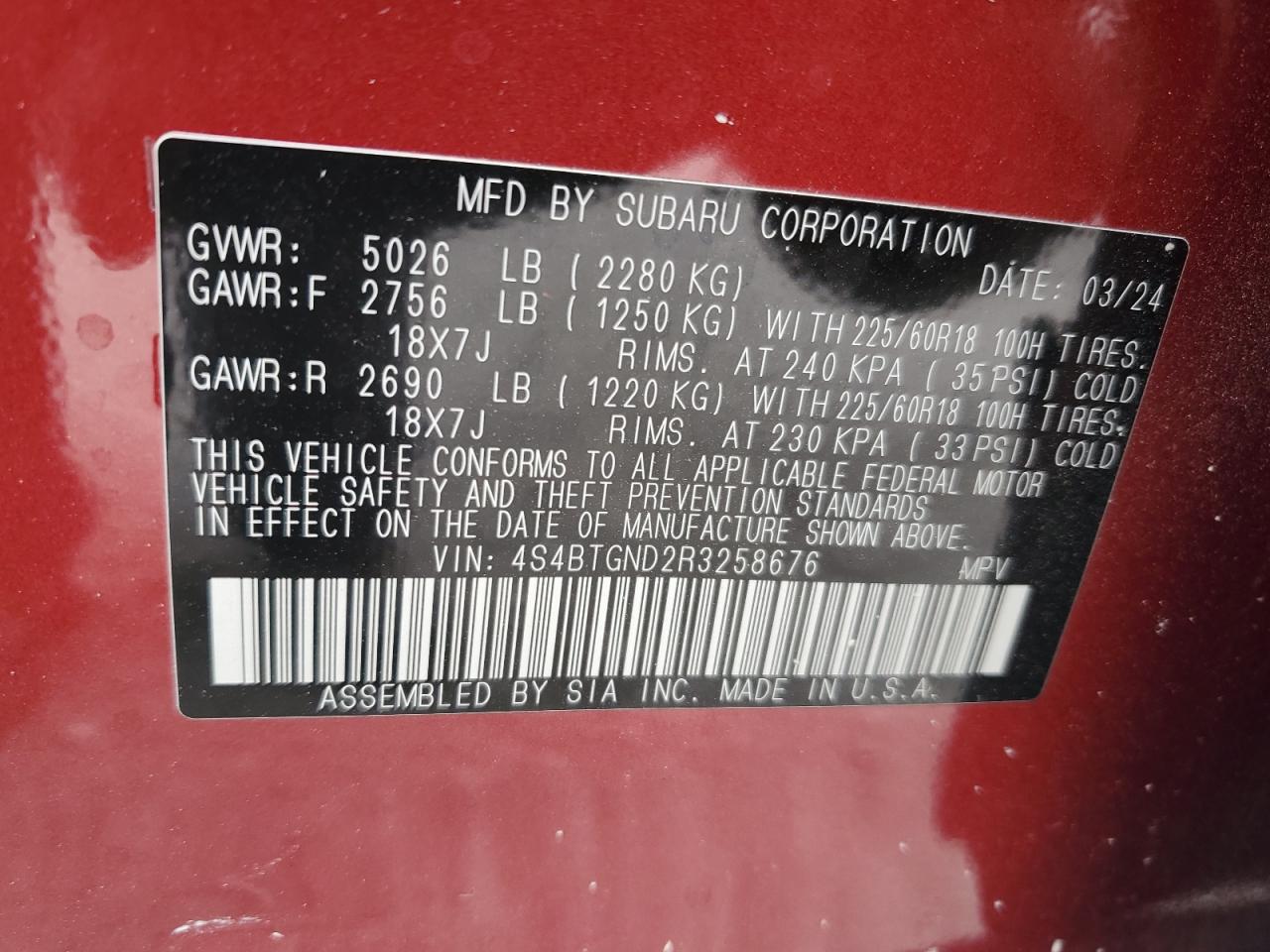 2024 SUBARU OUTBACK - 4S4BTGND2R3258676, колір - Червоний, 2.4, Бензин, Повний привід із США