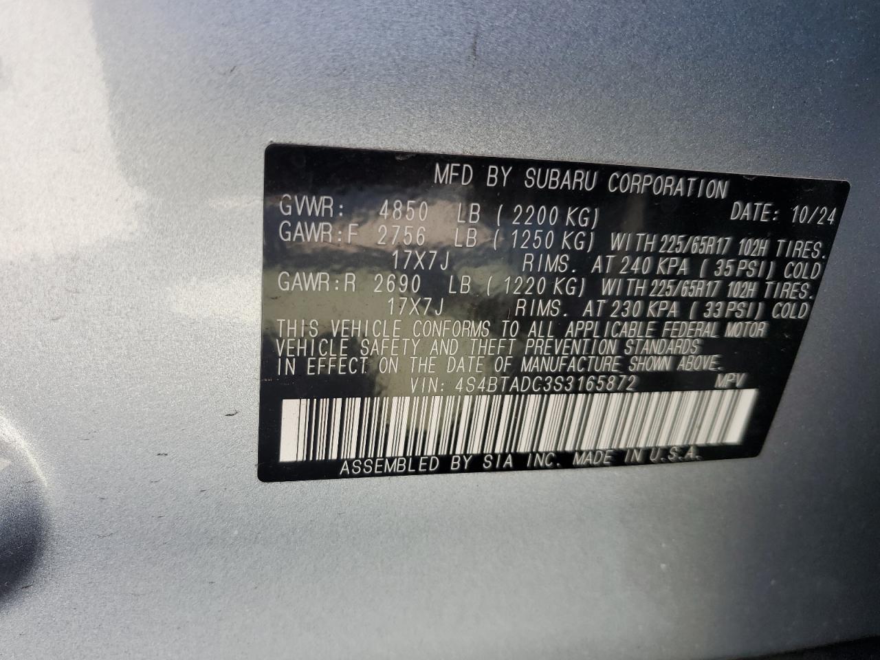 2025 SUBARU OUTBACK - 4S4BTADC3S3165872, колір - Срібний, 2.5, Бензин, Повний привід із США