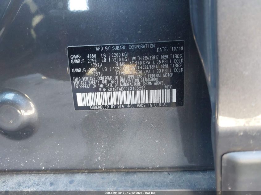 2020 SUBARU OUTBACK - 4S4BTAEC1L3125256, колір - Сірий, 2.5, Бензин, Повний привід із США