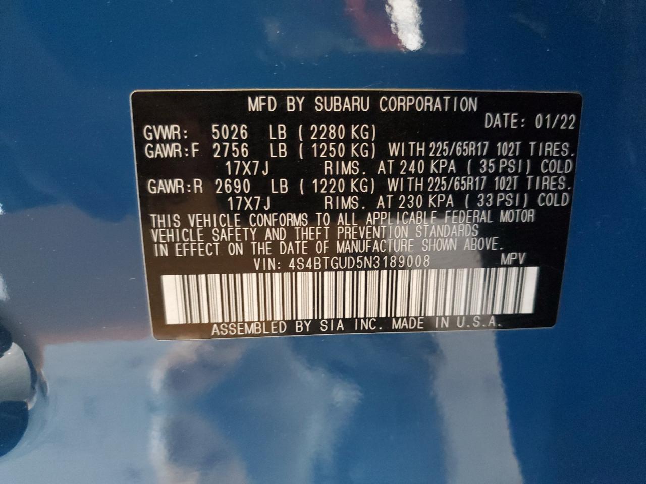 2022 SUBARU OUTBACK - 4S4BTGUD5N3189008, колір - Синій, 2.4, Бензин, Повний привід із США
