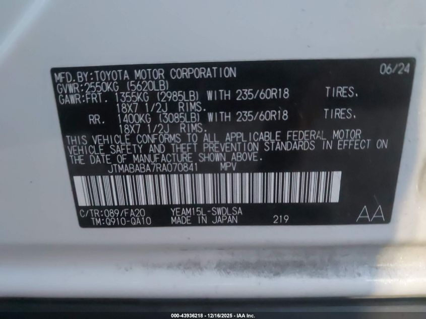 Колір Привід Повний привідVIN JTMABABA7RA070841Стан НевідомоУшкодження Невідомо