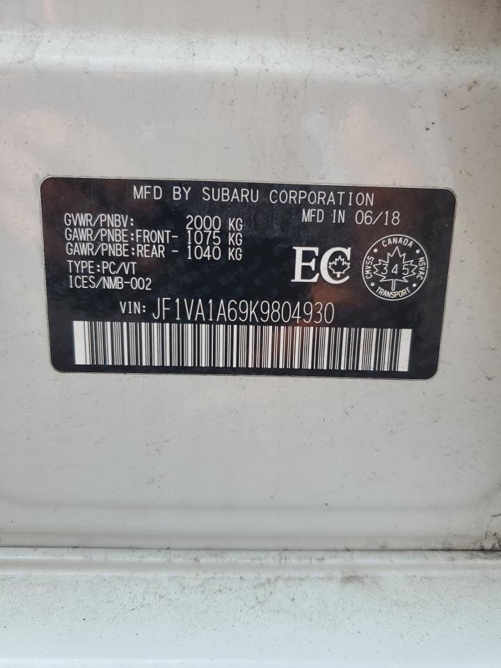 2019 SUBARU WRX - JF1VA1A69K9804930, колір - Білий, 2.0, Бензин, Повний привід із США