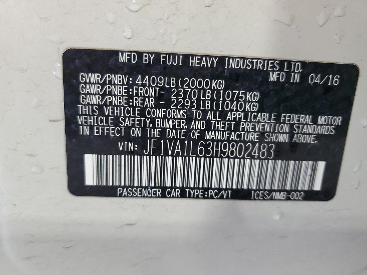 2017 SUBARU WRX - JF1VA1L63H9802483, колір - Білий, 2.0, Бензин, Повний привід із США