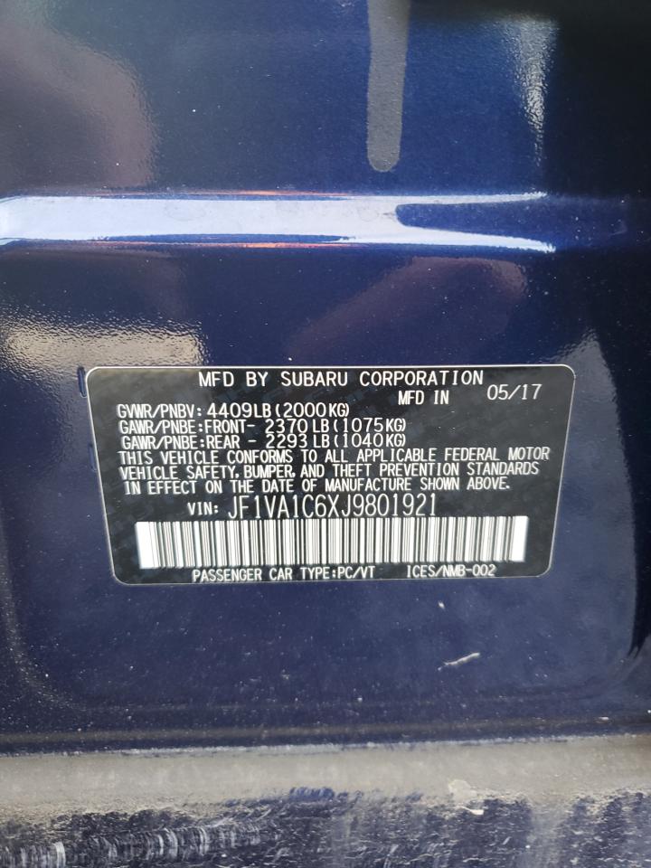 2018 SUBARU WRX - JF1VA1C6XJ9801921, колір - Синій, 2.0, Бензин, Повний привід із США