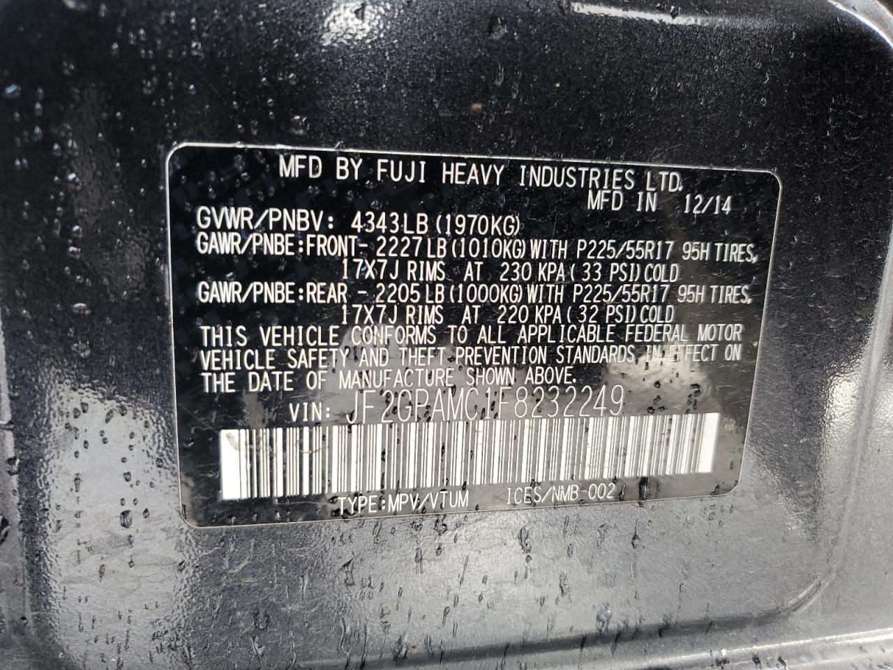 Колір ЧорнийЦиліндри 4Привід Повний привідVIN JF2GPAMC1F8232249Стан Заводиться та їде (перевірено)Ушкодження З боків