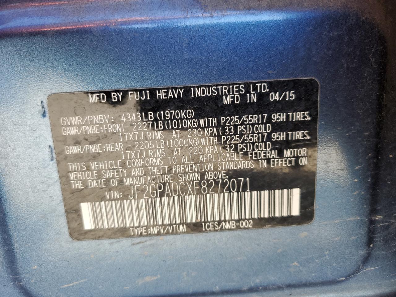 2015 SUBARU XV - JF2GPADCXF8272071, колір - Синій, 2.0, Бензин, Повний привід із США
