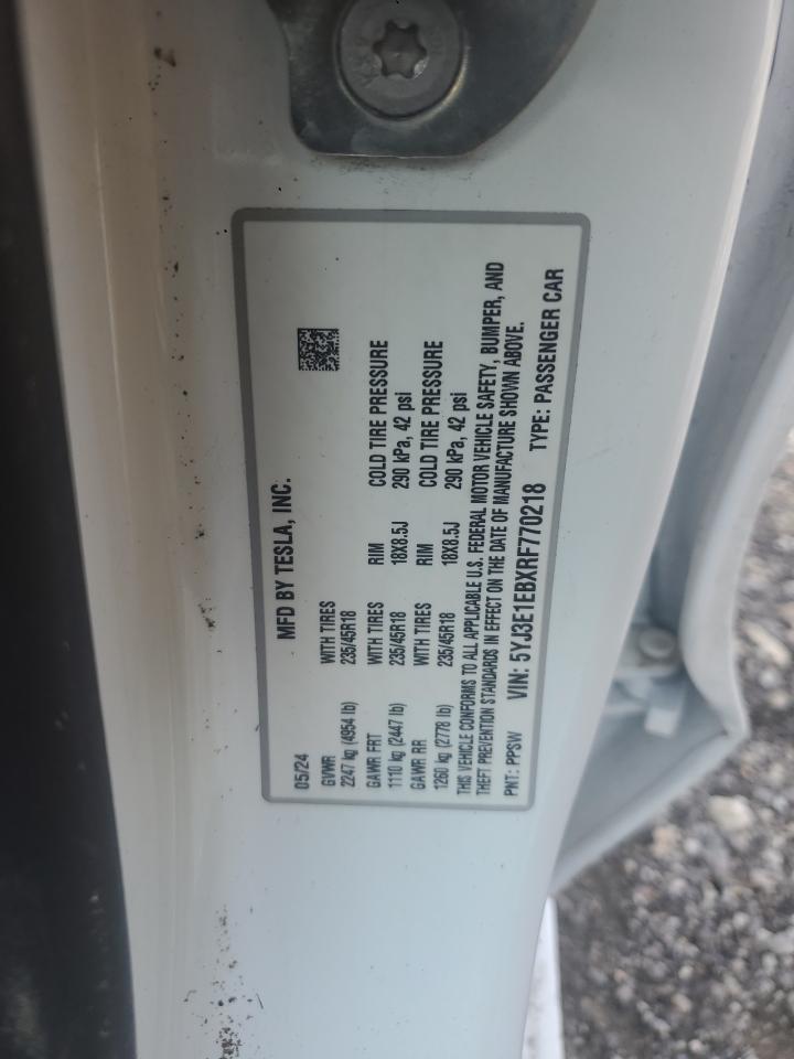 2024 TESLA MODEL 3 - 5YJ3E1EBXRF770218, колір - Білий, , Електричний, Повний привід із США