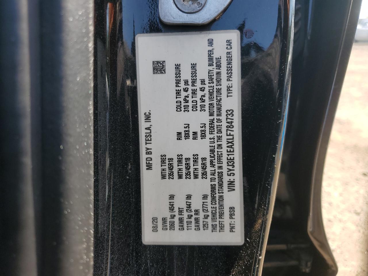 2020 TESLA MODEL 3 - 5YJ3E1EAXLF784733, колір - Чорний, , Електричний, Задній привід із США
