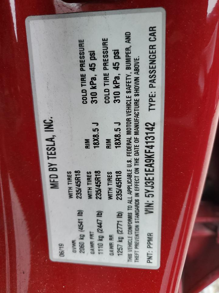 2019 TESLA MODEL 3 - 5YJ3E1EA9KF413142, колір - Червоний, , Електричний, Задній привід із США