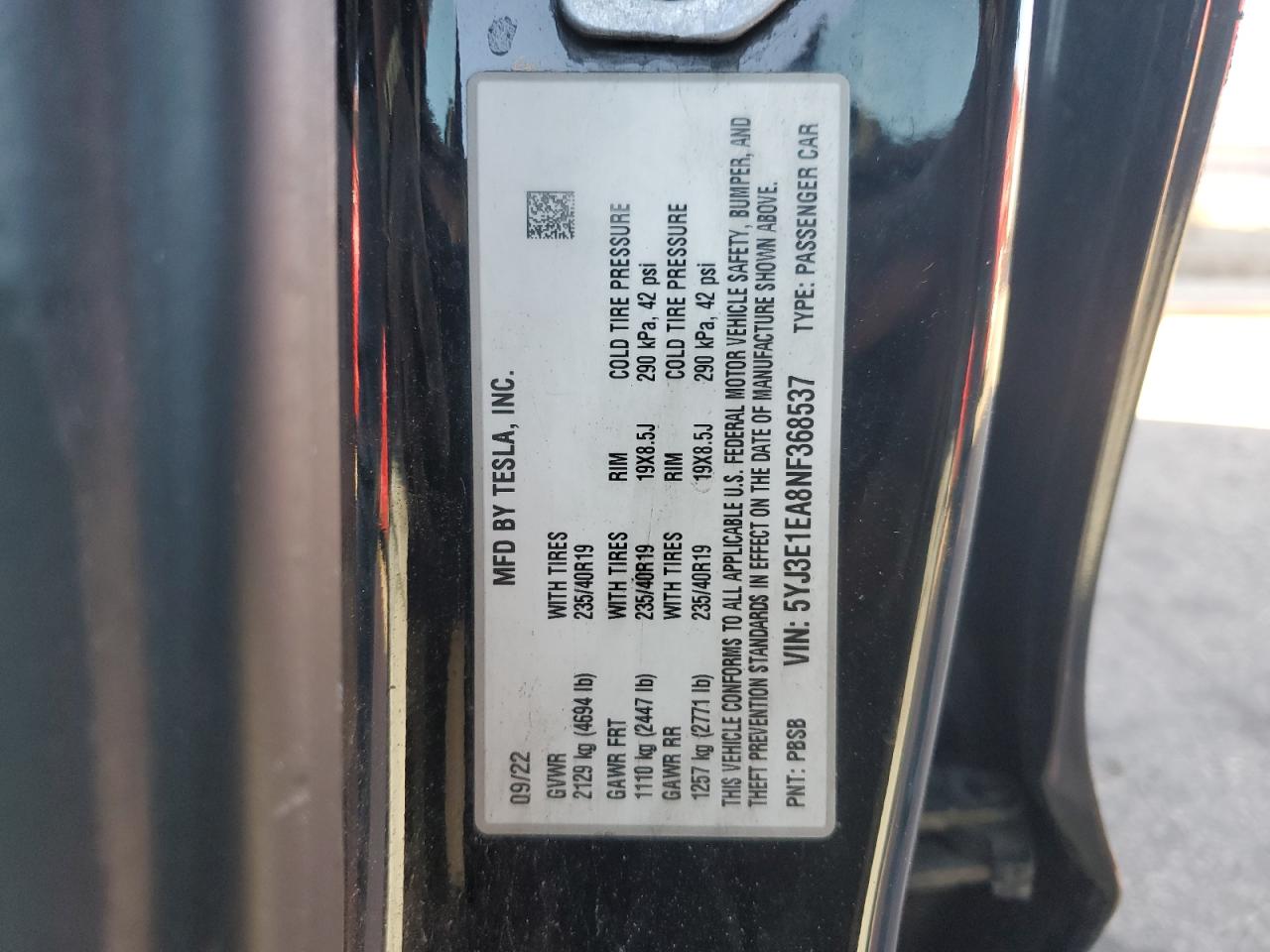 2022 TESLA MODEL 3 - 5YJ3E1EA8NF368537, колір - Чорний, , Електричний, Задній привід із США