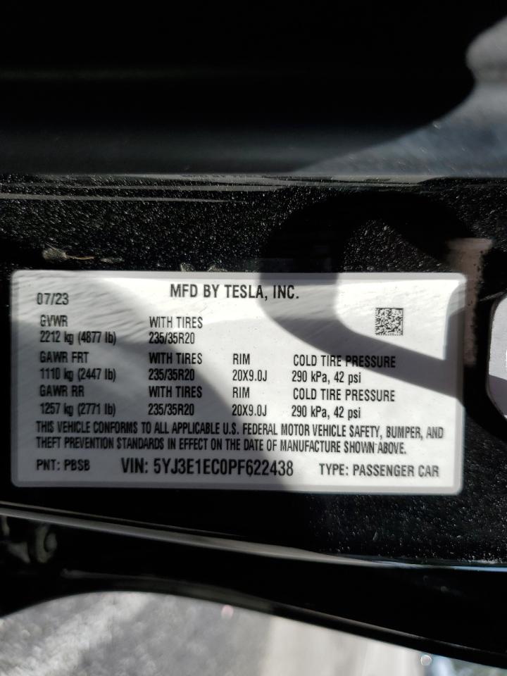 2023 TESLA MODEL 3 - 5YJ3E1EC0PF622438, колір - Чорний, , Електричний, Повний привід із США