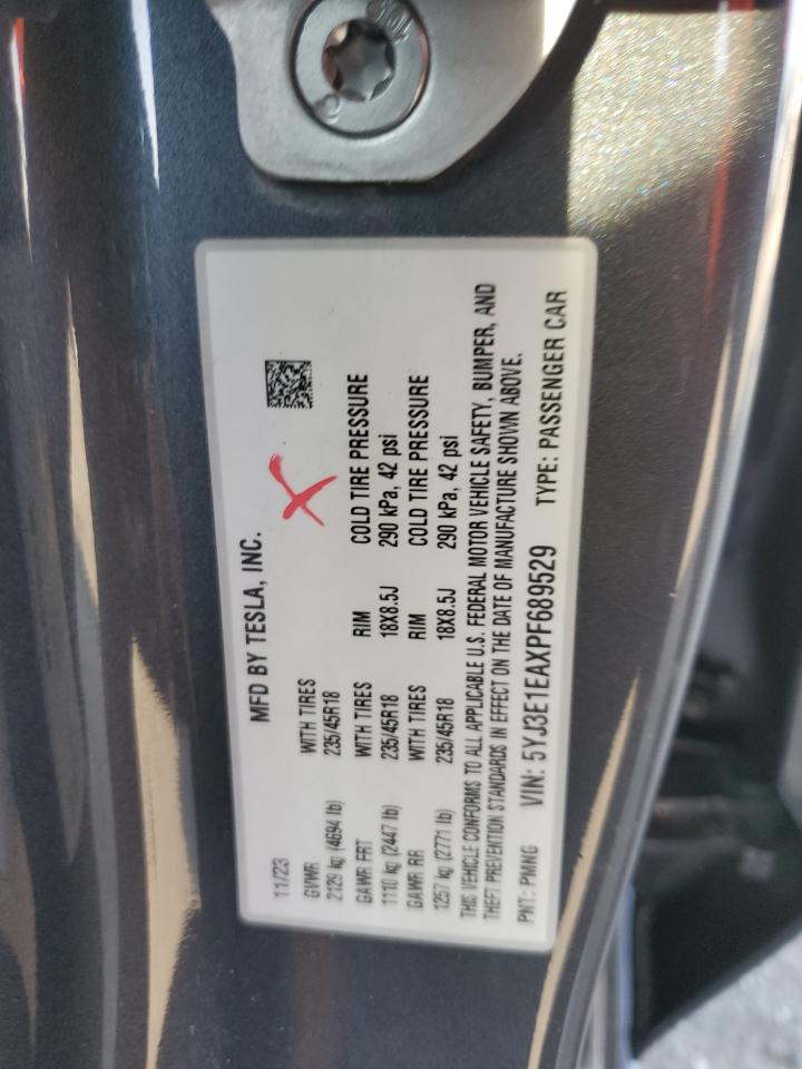 2023 TESLA MODEL 3 - 5YJ3E1EAXPF689529, колір - Срібний, , Електричний, Задній привід із США