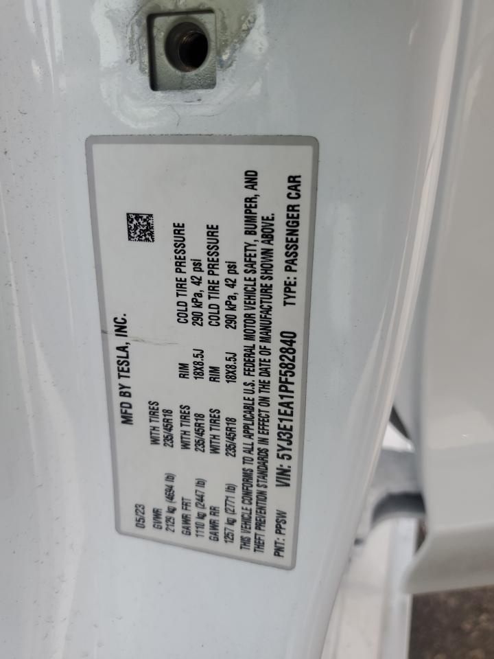 2023 TESLA MODEL 3 - 5YJ3E1EA1PF582840, колір - Білий, , Електричний, Задній привід із США