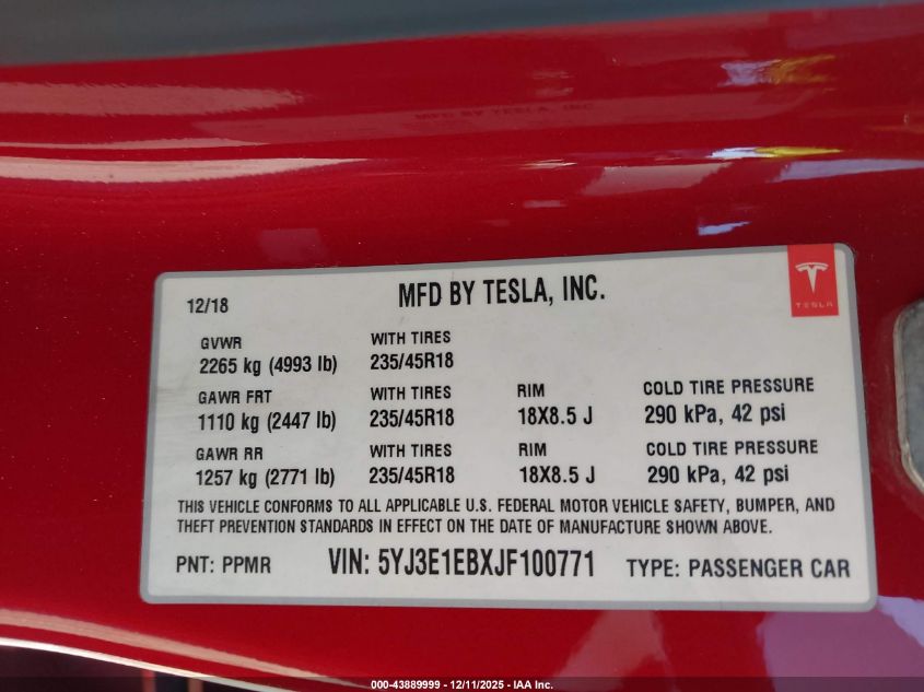 2018 TESLA MODEL 3