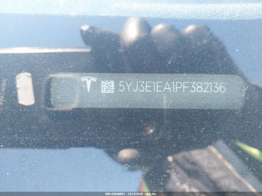 2023 TESLA MODEL 3 - 5YJ3E1EA1PF382136, колір - , U, Електричний, Задній привід із США