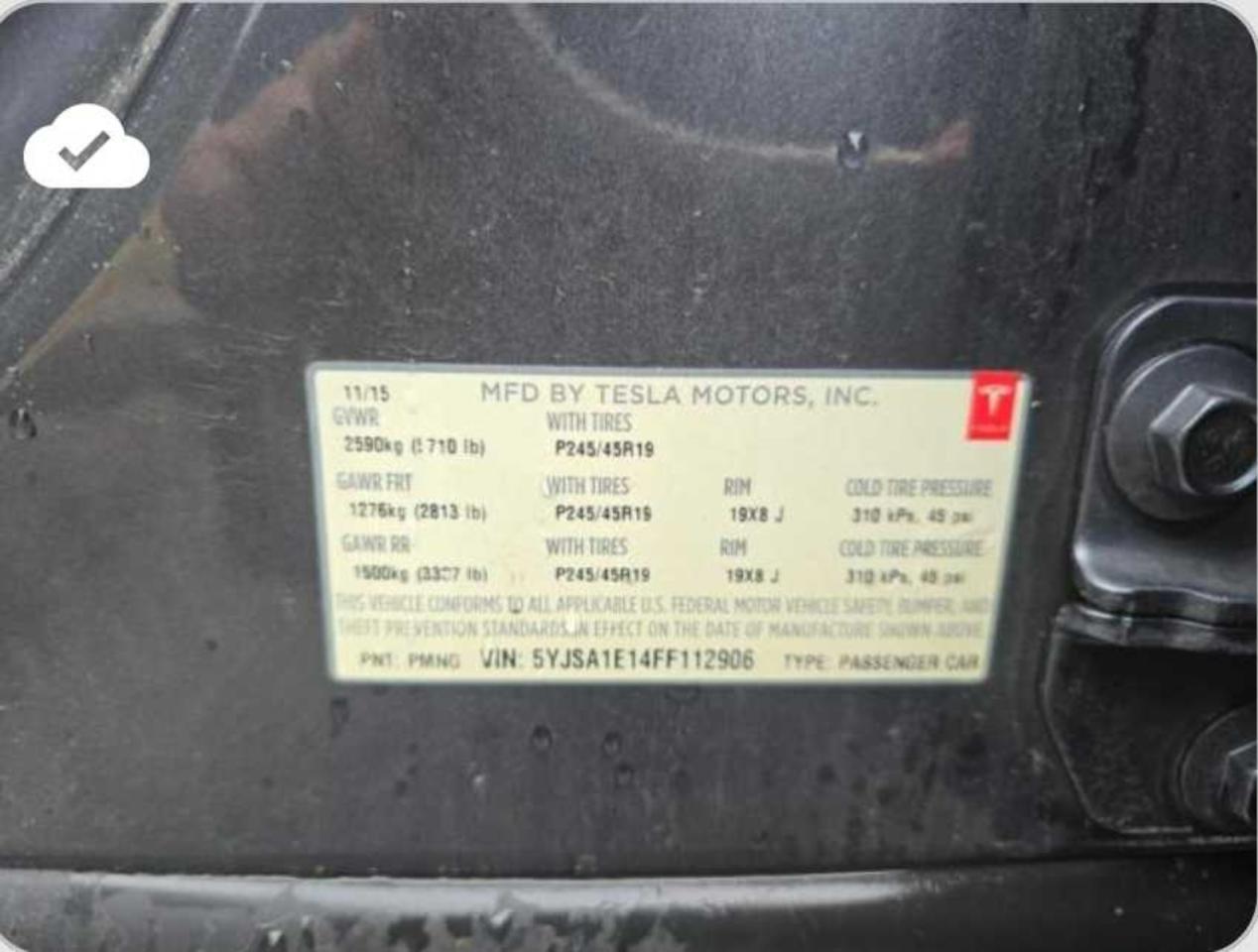 2015 TESLA MODEL S - 5YJSA1E14FF112906, колір - Сірий, , Електричний, Задній привід із США
