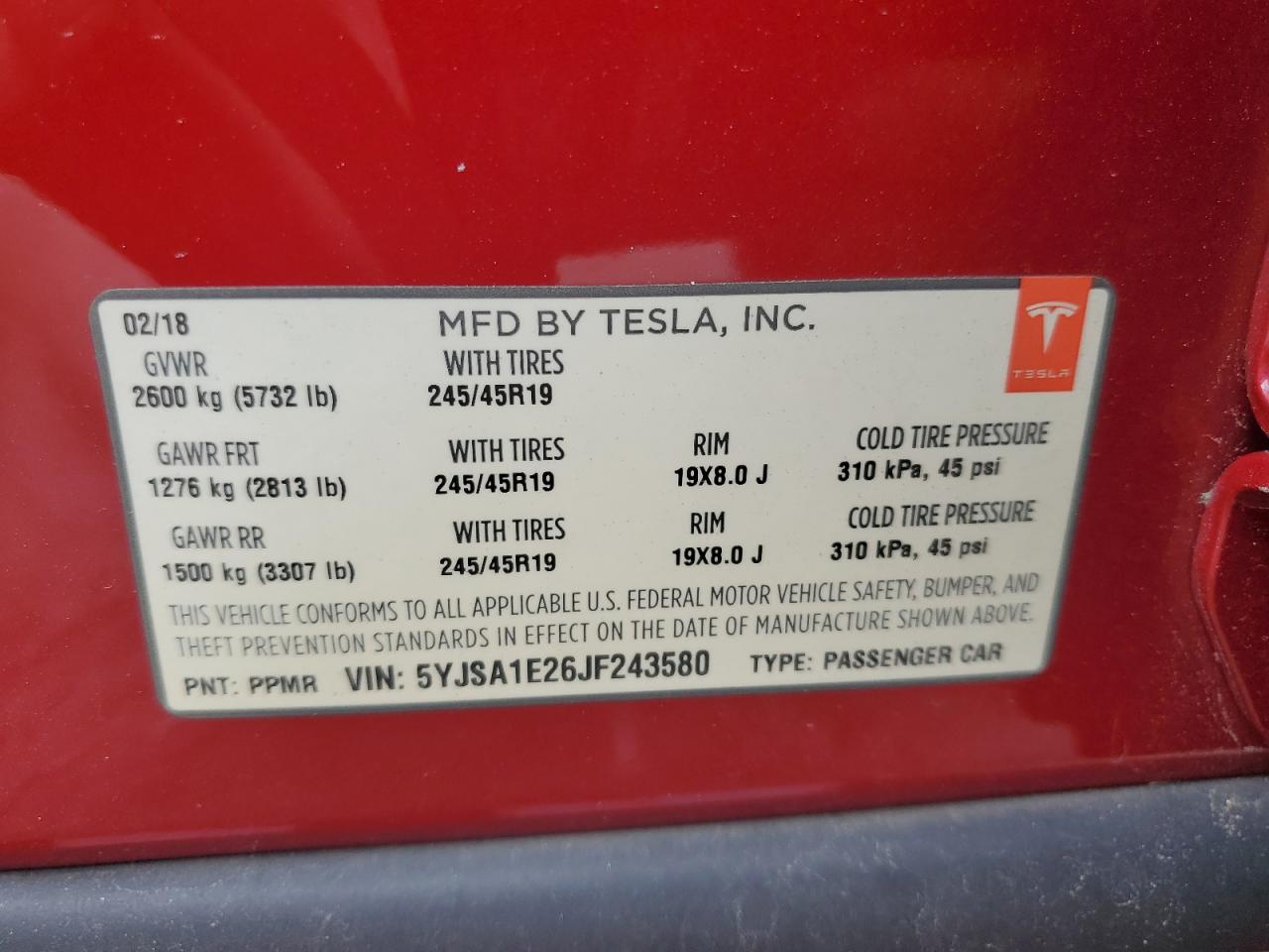 2018 TESLA MODEL S - 5YJSA1E26JF243580, колір - Червоний, , Електричний, Повний привід із США