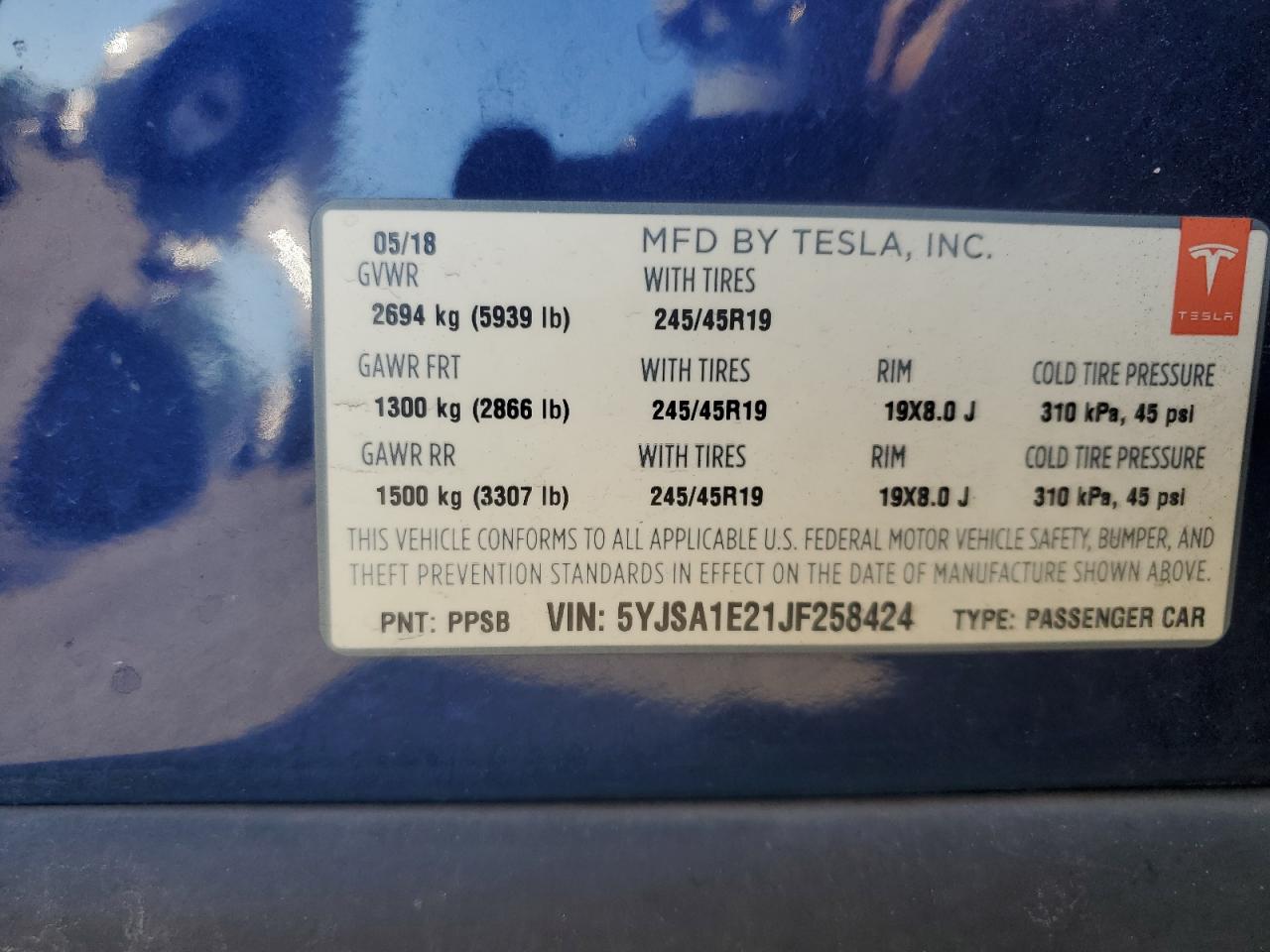 2018 TESLA MODEL S - 5YJSA1E21JF258424, колір - Синій, , Електричний, Повний привід із США