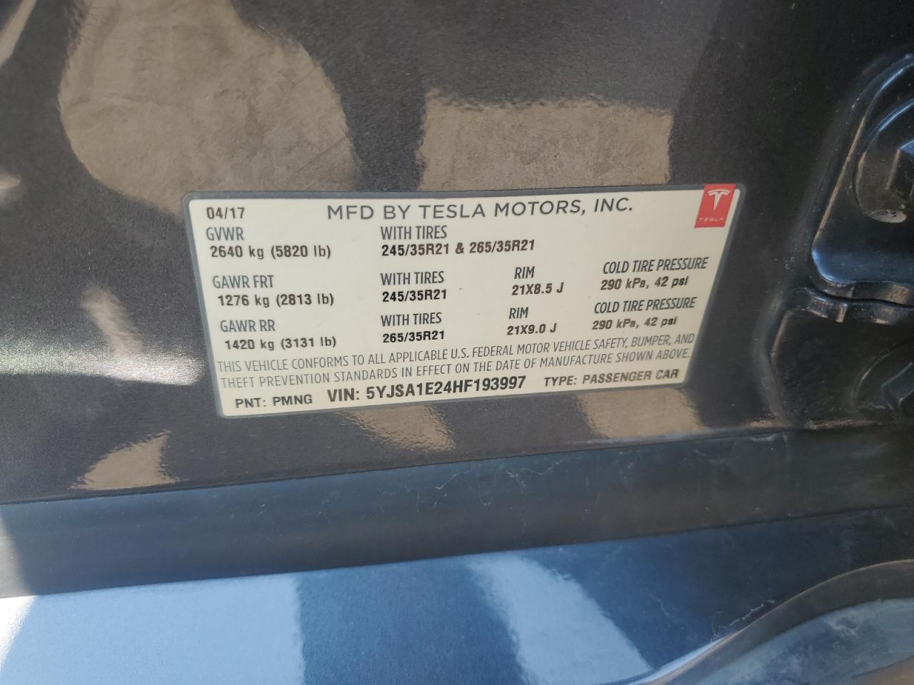 2017 TESLA MODEL S - 5YJSA1E24HF193997, колір - Сірий, , Електричний, Повний привід із США