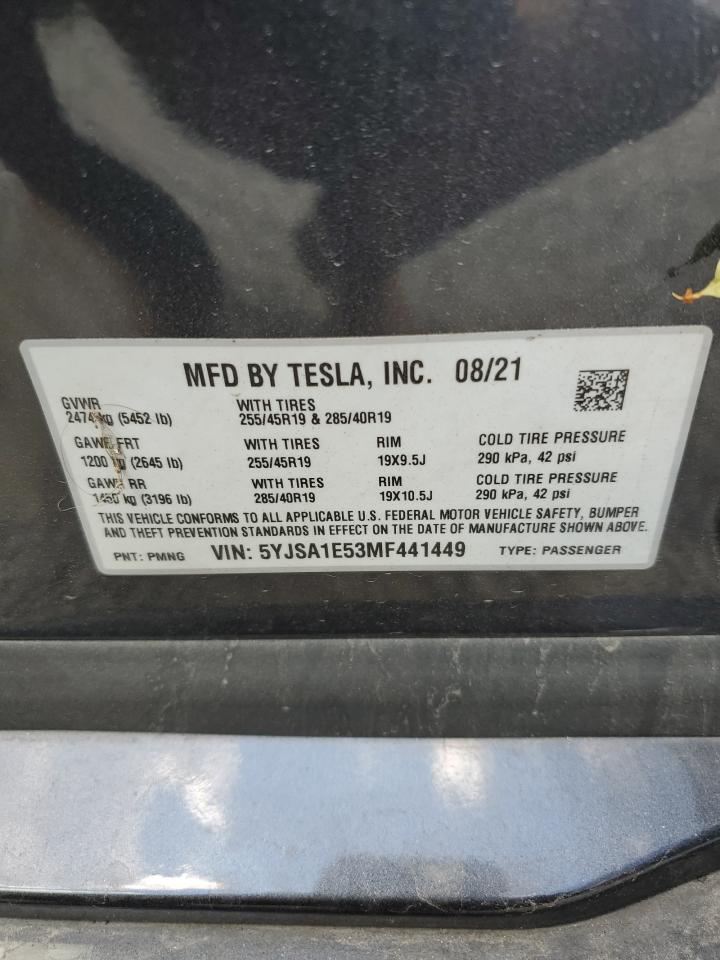 2021 TESLA MODEL S - 5YJSA1E53MF441449, колір - Сірий, , Електричний, Повний привід із США