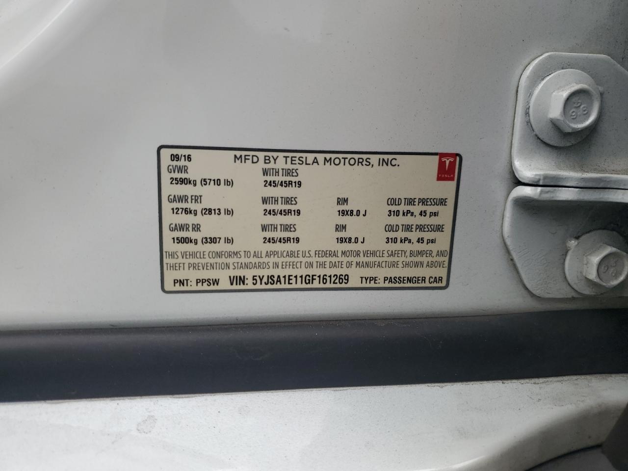 2016 TESLA MODEL S - 5YJSA1E11GF161269, колір - Білий, , Електричний, Задній привід із США