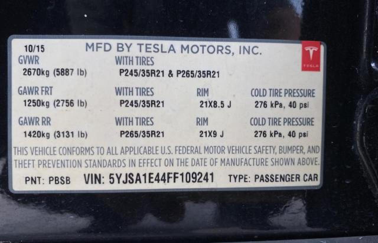 2015 TESLA MODEL S - 5YJSA1E44FF109241, колір - Чорний, , Електричний, Повний привід із США
