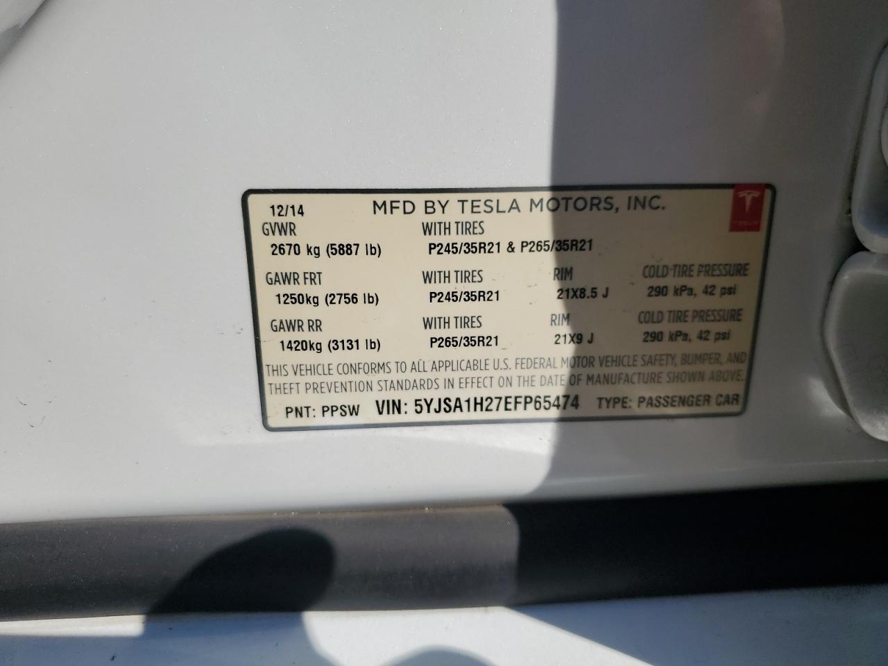 2014 TESLA MODEL S - 5YJSA1H27EFP65474, колір - Білий, , Електричний, Повний привід із США