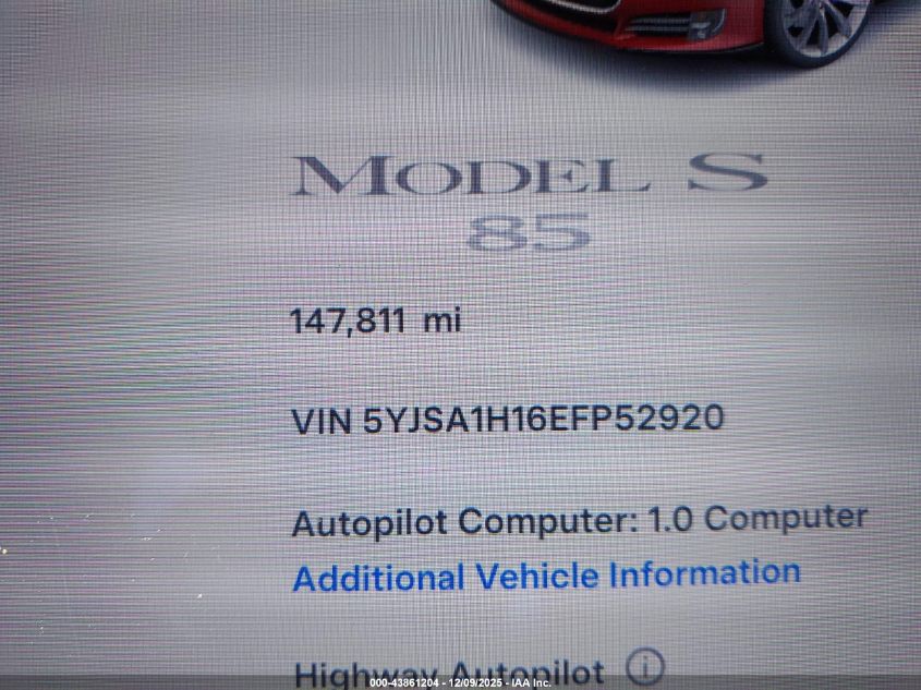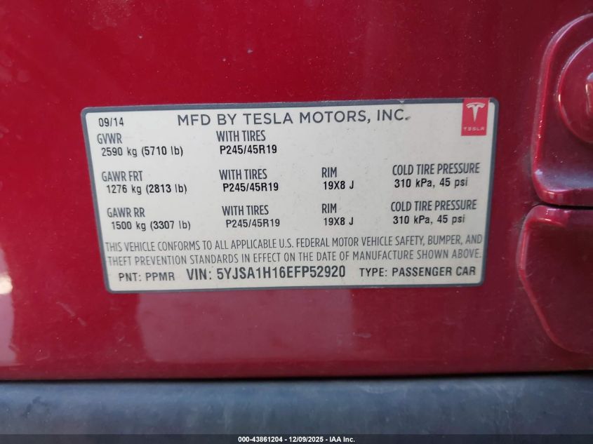 2014 TESLA MODEL S - 5YJSA1H16EFP52920, колір - Червоний, U, Електричний, Задній привід із США