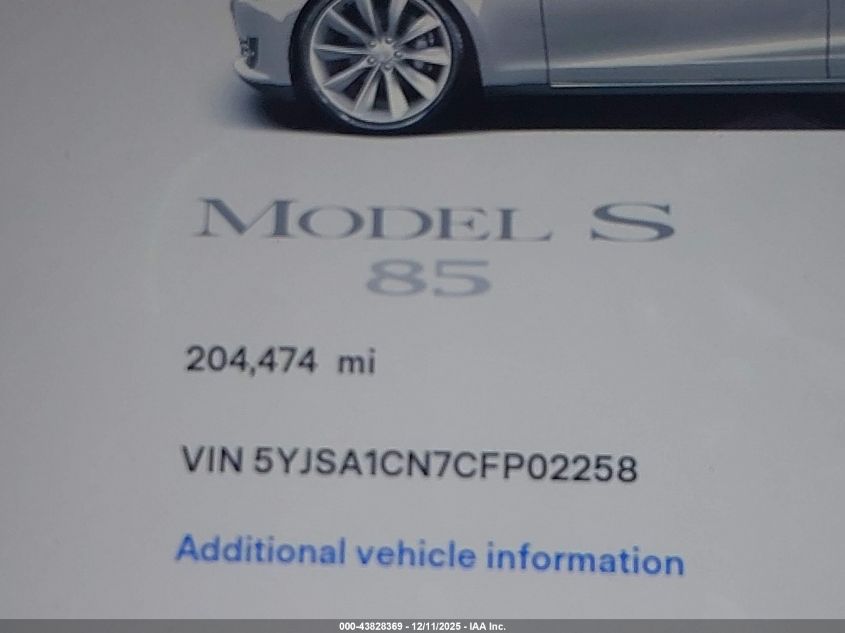 2012 TESLA MODEL S - 5YJSA1CN7CFP02258, колір - Срібний, U, Електричний, Задній привід із США