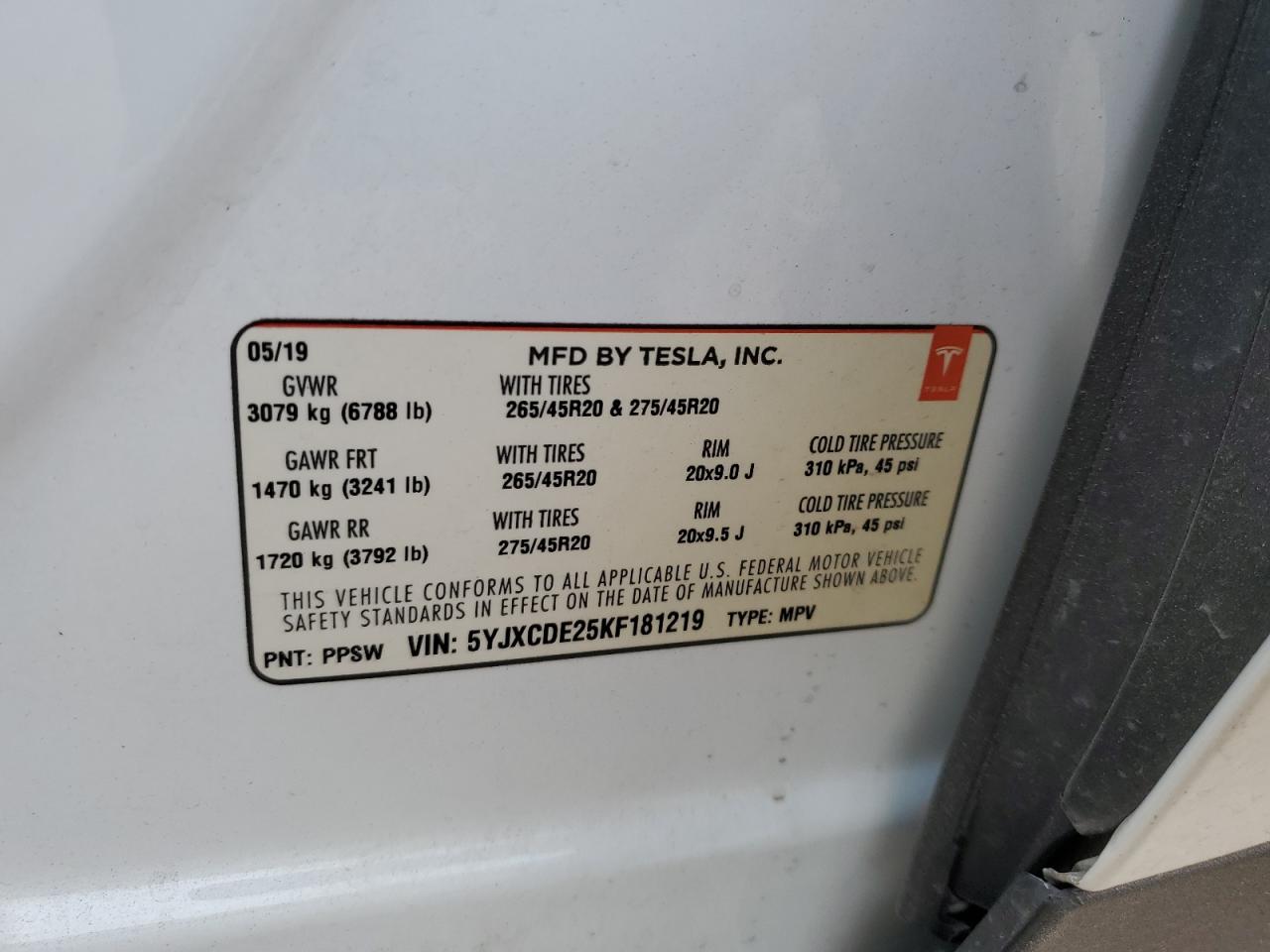 2019 TESLA MODEL X - 5YJXCDE25KF181219, колір - Білий, , Електричний, Повний привід із США