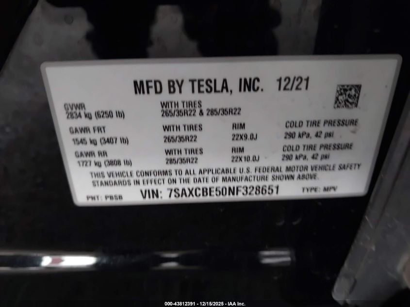 2022 TESLA MODEL X - 7SAXCBE50NF328651, колір - Чорний, U, Електричний, Повний привід із США