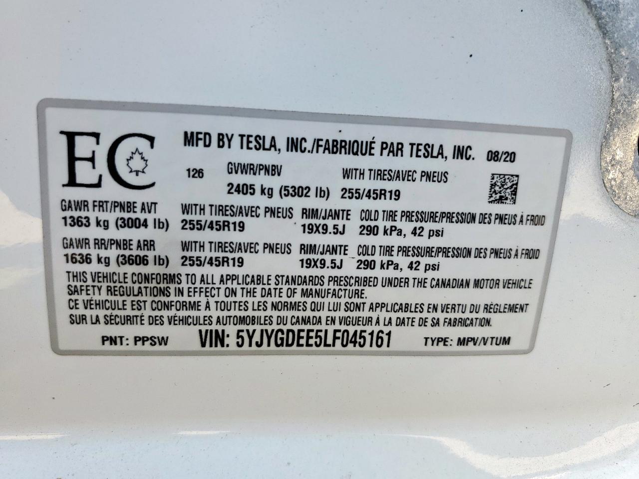 2020 TESLA MODEL Y - 5YJYGDEE5LF045161, колір - Білий, , Електричний, Повний привід із США