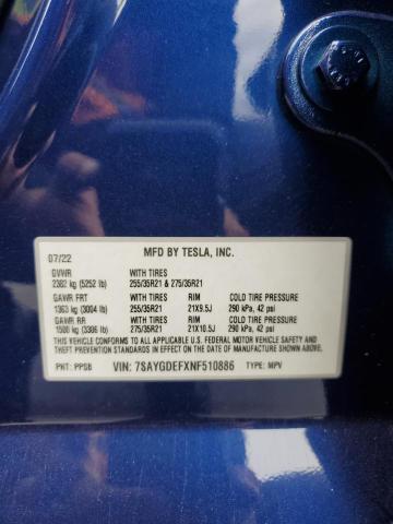 2022 TESLA MODEL Y - 7SAYGDEFXNF510886, колір - Синій, , Електричний, Повний привід із США