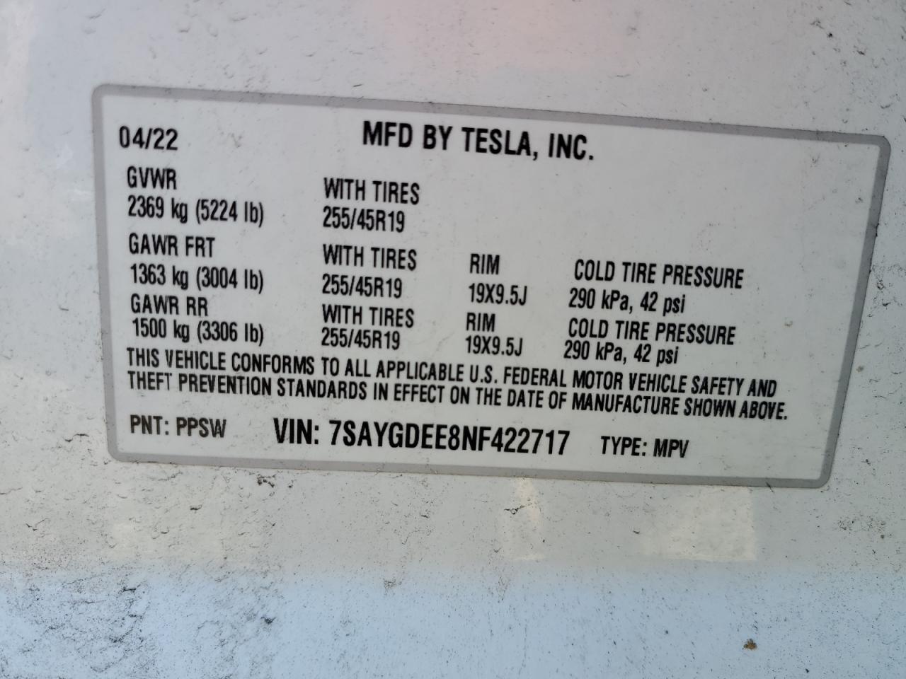2022 TESLA MODEL Y - 7SAYGDEE8NF422717, колір - Білий, , Електричний, Повний привід із США
