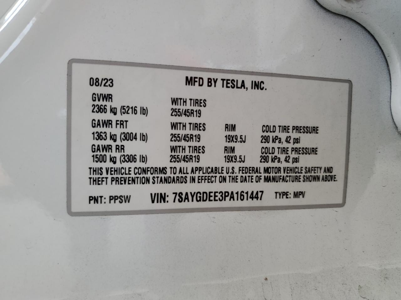 2023 TESLA MODEL Y - 7SAYGDEE3PA161447, колір - Білий, , Електричний, Повний привід із США