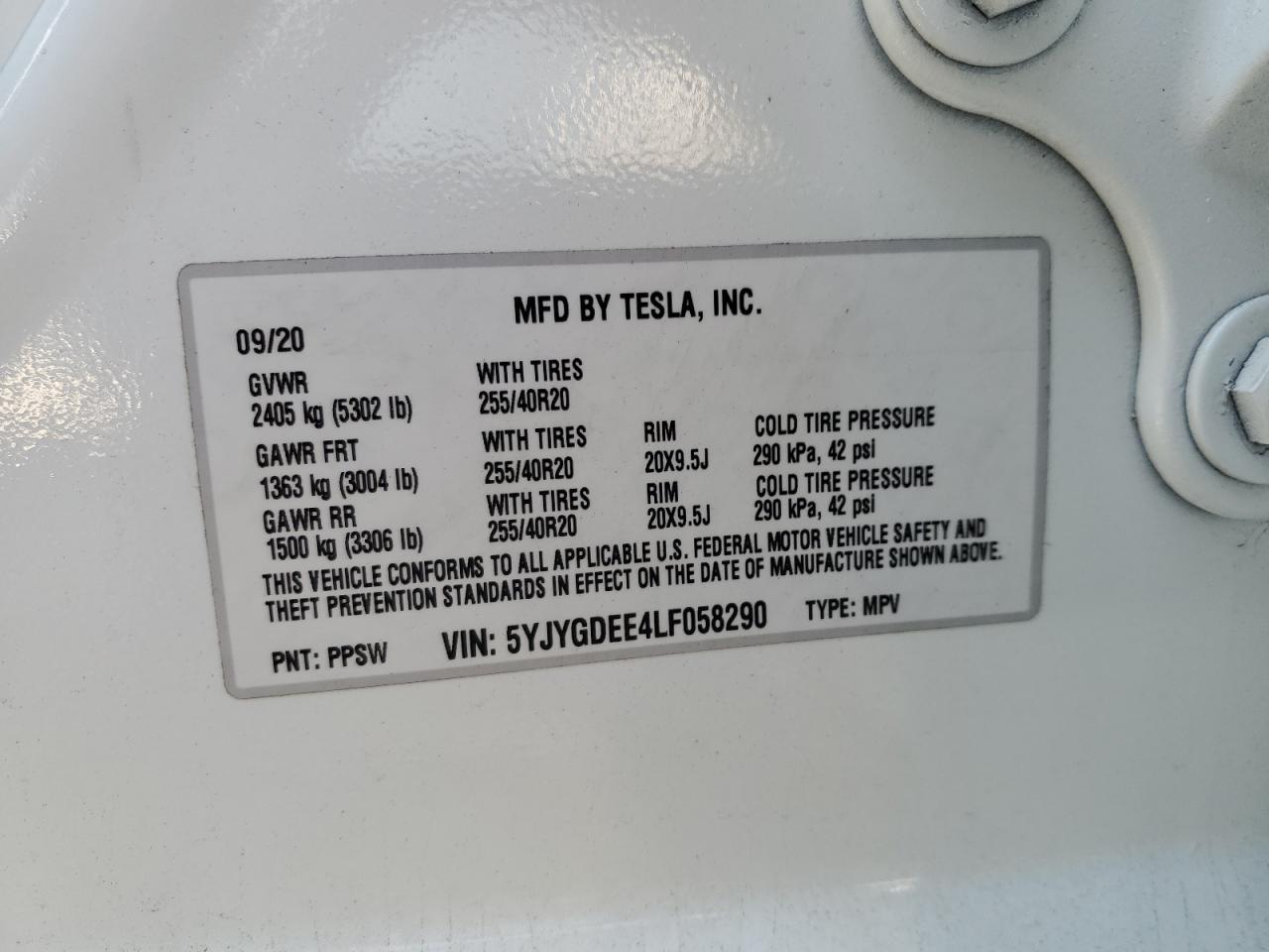 2020 TESLA MODEL Y - 5YJYGDEE4LF058290, колір - Білий, , Електричний, Повний привід із США