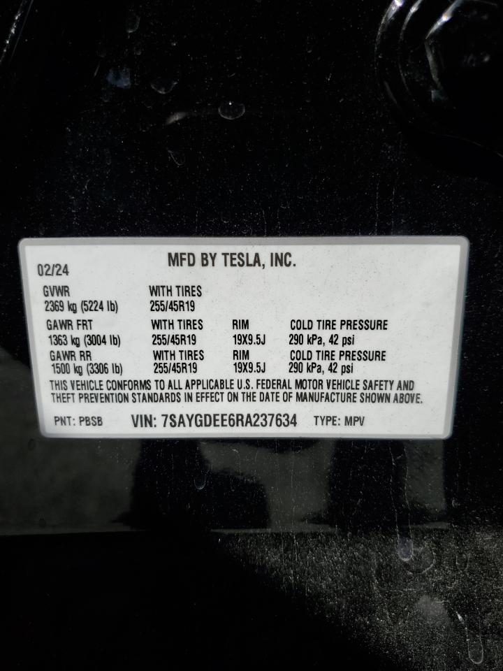 2024 TESLA MODEL Y - 7SAYGDEE6RA237634, колір - Чорний, , Електричний, Повний привід із США