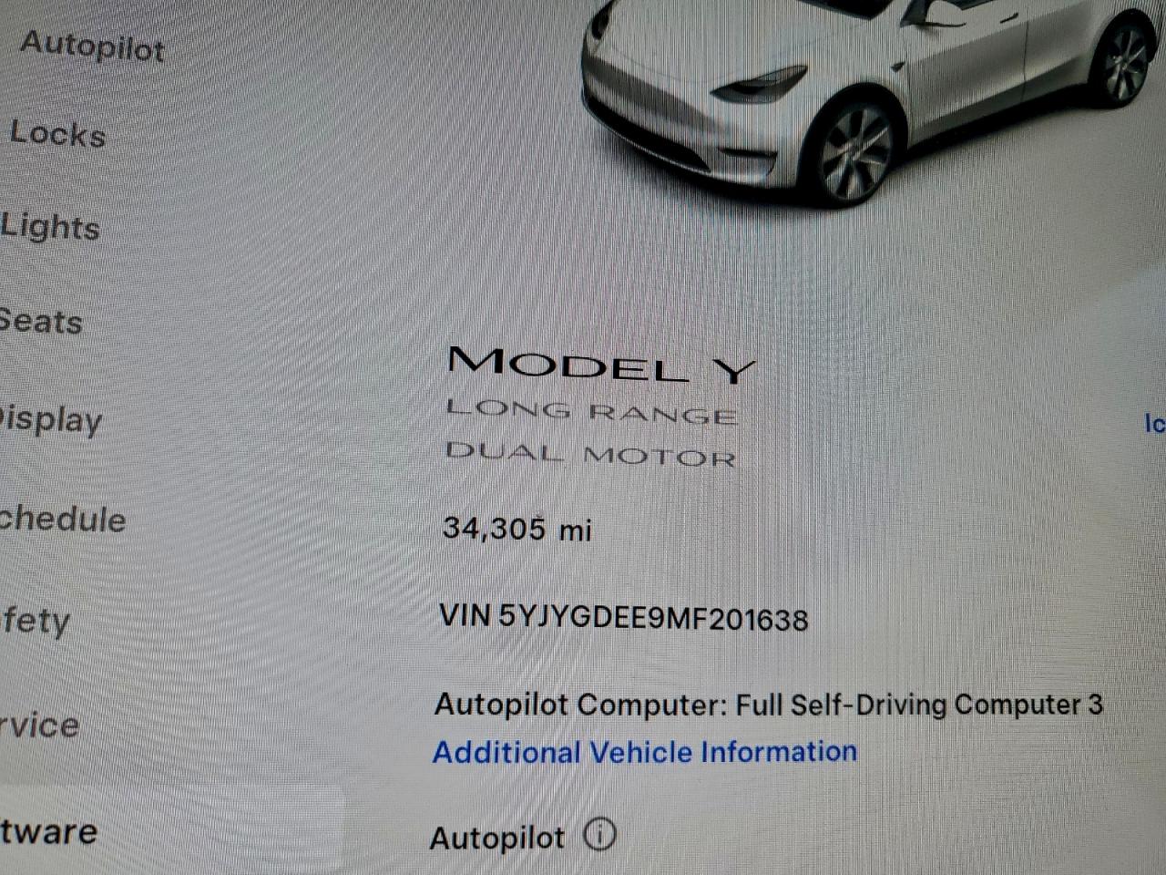 2021 TESLA MODEL Y - 5YJYGDEE9MF201638, колір - Білий, , Електричний, Повний привід із США