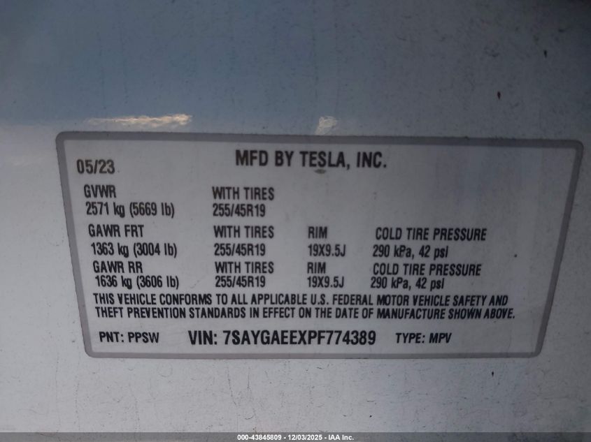 2023 TESLA MODEL Y - 7SAYGAEEXPF774389, колір - Білий, U, Електричний, Повний привід із США