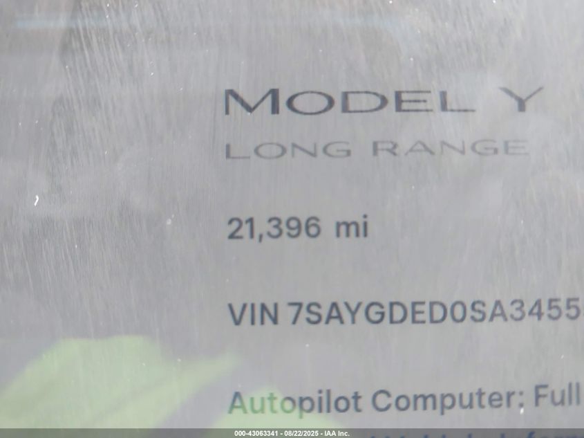 2025 TESLA MODEL Y - 7SAYGDED0SA345552, колір - Сірий, U, Електричний, із США