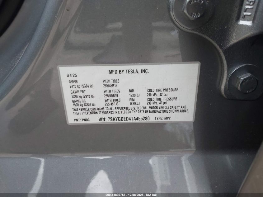 2026 TESLA MODEL Y - 7SAYGDED4TA455280, колір - Сірий, U, Електричний, із США