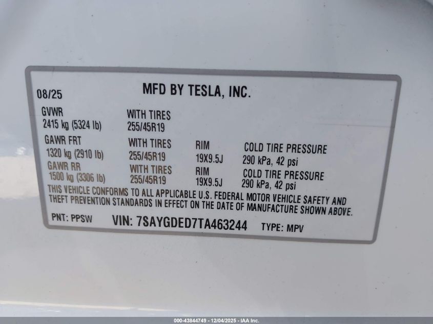 2026 TESLA MODEL Y - 7SAYGDED7TA463244, колір - Білий, U, Електричний, із США