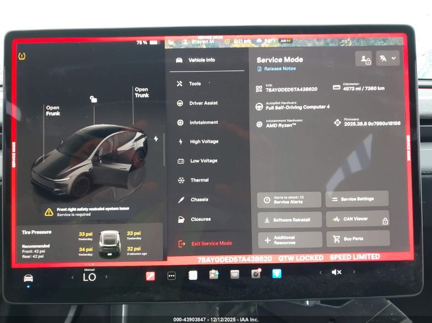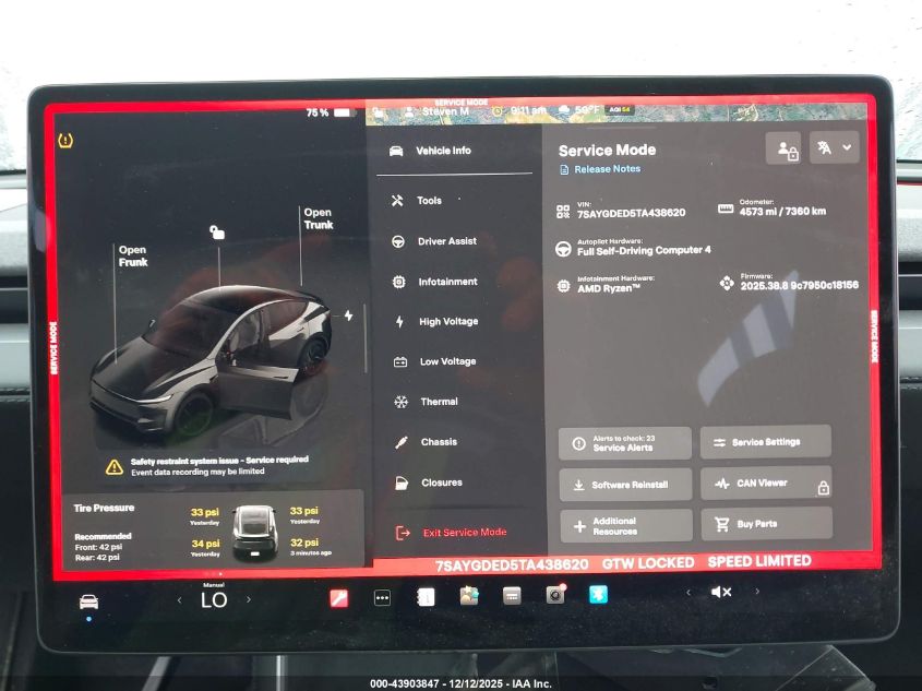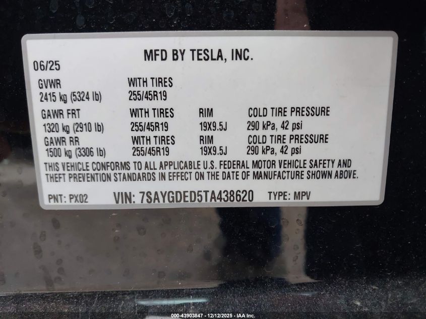 2026 TESLA MODEL Y - 7SAYGDED5TA438620, колір - Чорний, U, Електричний, із США