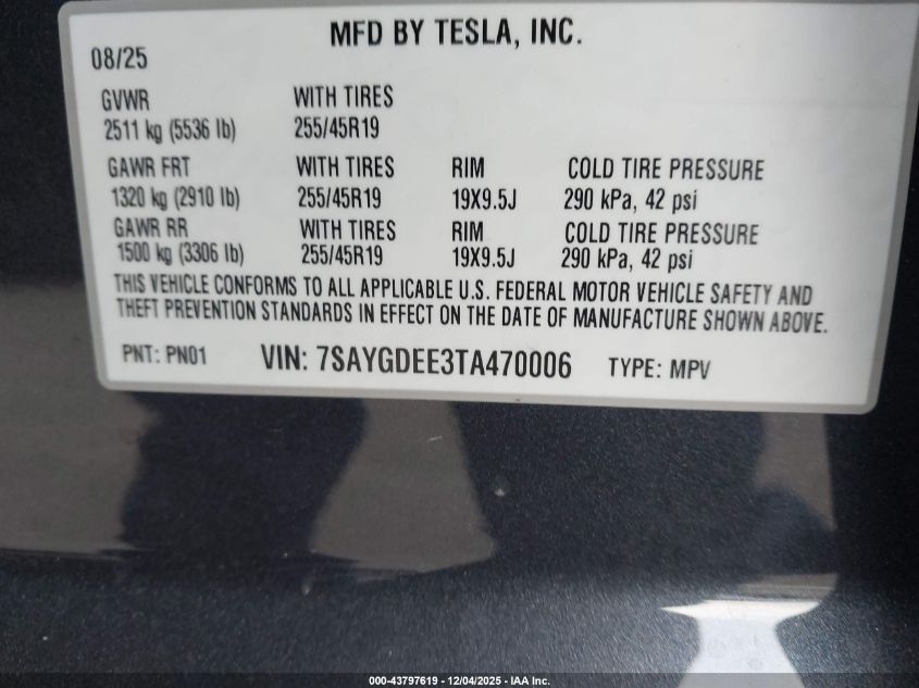 2026 TESLA MODEL Y - 7SAYGDEE3TA470006, колір - Сірий, U, Електричний, Повний привід із США