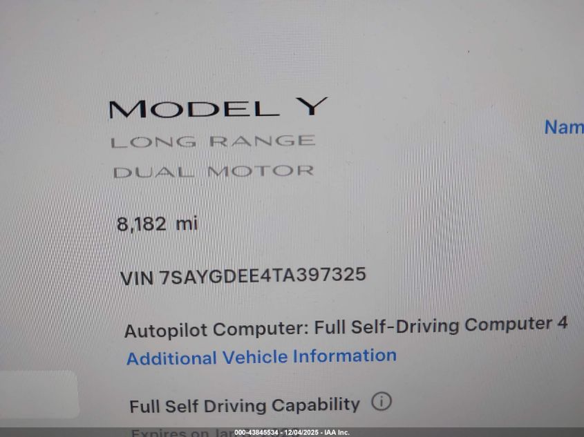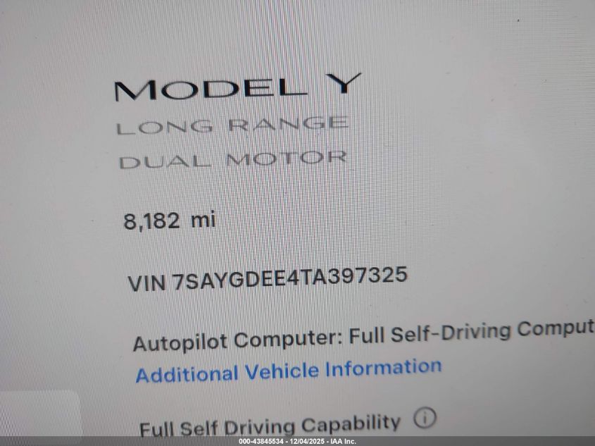 2026 TESLA MODEL Y - 7SAYGDEE4TA397325, колір - Білий, U, Електричний, Повний привід із США