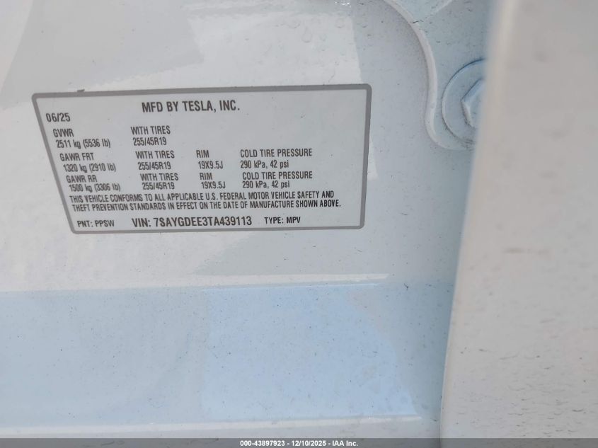2026 TESLA MODEL Y - 7SAYGDEE3TA439113, колір - Білий, U, Електричний, Повний привід із США