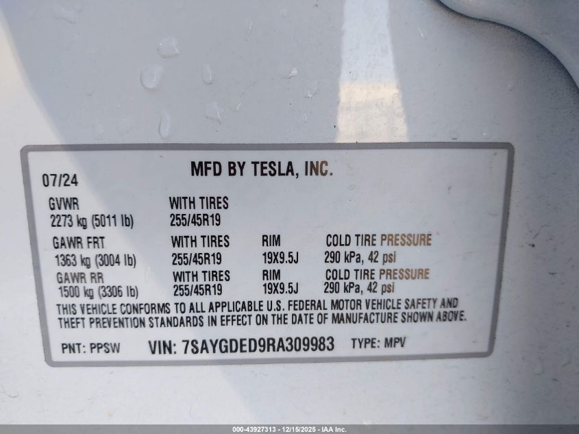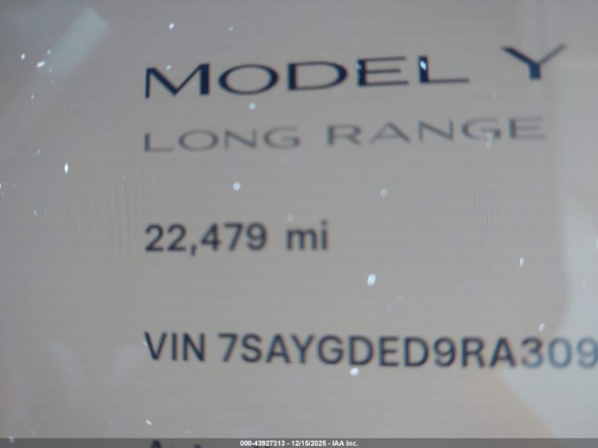 2024 TESLA MODEL Y - 7SAYGDED9RA309983, колір - , U, Електричний, із США